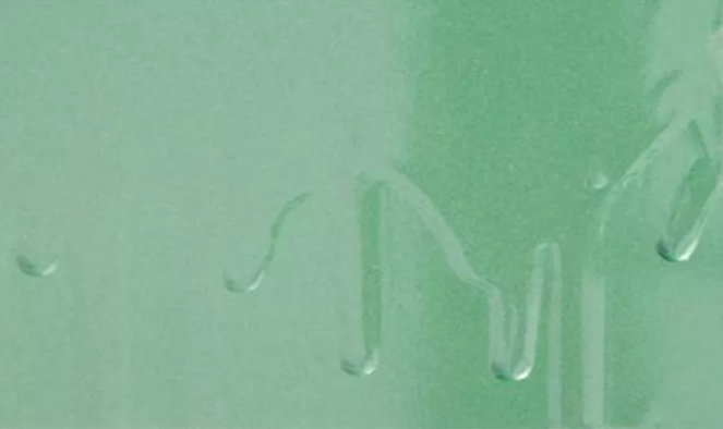 噴塗和幹燥中垂直或傾斜的表麵,塗膜形成由上而下的流痕或下邊緣增厚的現象,就叫流掛。